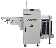 The system will receive the PCB after reflow soldering from the conveyor and will place it in the width adjustable cassette / magazine.