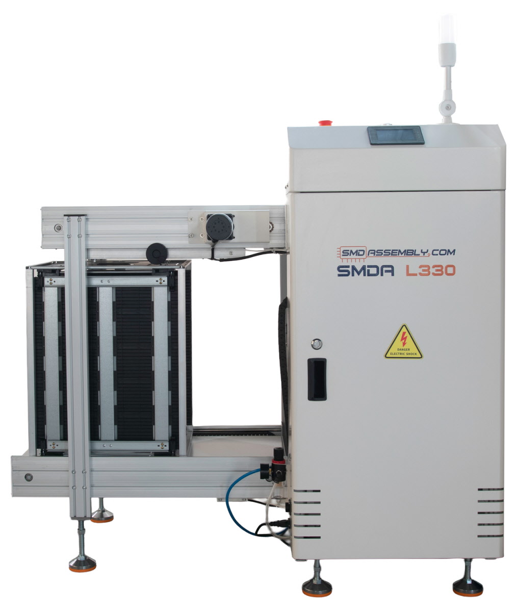 The SMDA L390 is a fully automatic PCB loader designed to complete a small to medium sized assembly line. The user-friendly interface and the wide range of compatible PCB sizes makes this machine a vital part of your assembly line. Maximum of 50 PCB's.